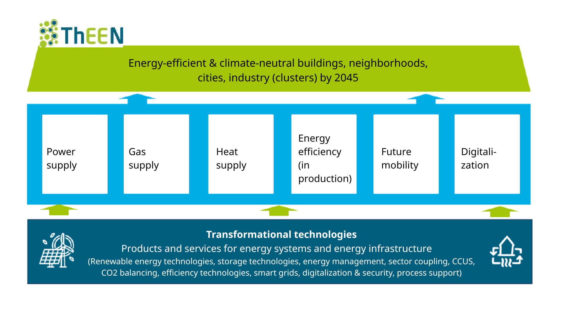 ThEEN's range of activities covers the entire field of transformation technologies (in particular products and services for energy systems) and energy infrastructure.
